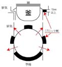 ブロック等で、釜本体を宙に浮かす状態に設置して下さい。 |
