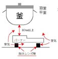 注1.釜土の上部にフード等を取り付け、給排気を良くして下さい。